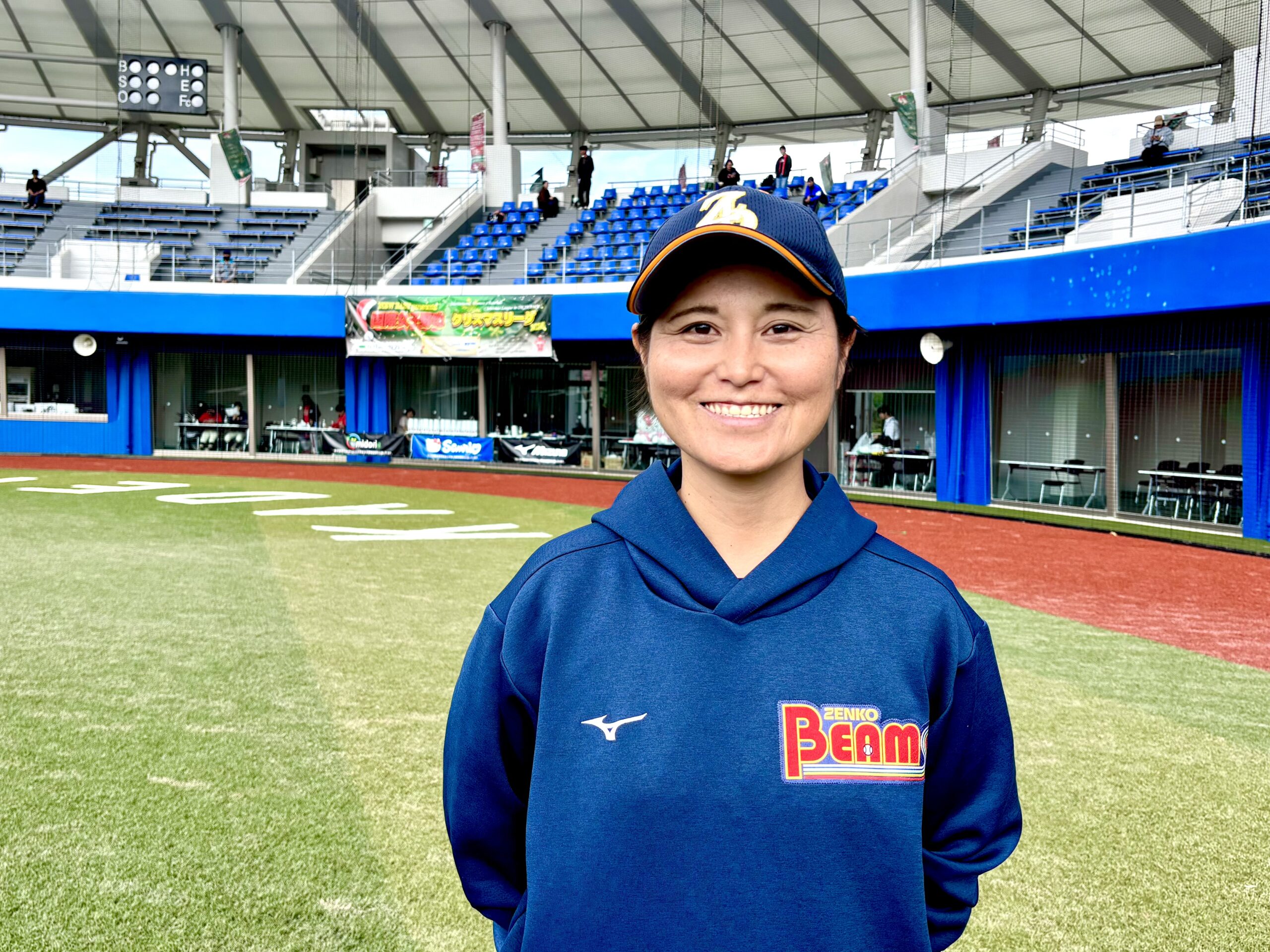 「(今大会最終戦を終えて)本当にみんな楽しそうにやってるのが良かったなってすごい思いますね。普段とは違うポジションを守ったり、野手の子にピッチャーをやってもらったりとか、そういう中で何かの学びになればいいなと思います。(試合後の円陣で選手たちに伝えたことは?)中塩(理沙)さんが、わざわざオーストラリアからこの大会だけのために来てくれたりとか、その他にも海外の選手たちが香港だったり、韓国だったりっていうところから日本に来てくれて、ここで一緒に野球をするっていうのはすごく意味のあることだと思うので、日本のみんなも負けないで頑張ろう、と。そして海外の選手たちはそれぞれの自分の国に戻って、自分たちの国の女子野球を今よりも良くしていこうという想いがあるので、これからも頑張ってね、と伝えました。そして、きっとまたどこかで会えるはずだから、と。その時に彼女たちのさらに成長した姿を見ることができたらいいなと思います。(今年がクリスマスリーグ初開催、今後へ向けて)毎年恒例になっていけば、もっともっと参加者が増えていくと思いますし、今回の大会の良かった部分と悪かった部分、両方あると思うので、それを次に活かして行くことができればいいなと思います。(沖縄での開催は?)暖かいのがいいですよね。12月末まで試合をできるっていうことはなかなかないこと。もっと全国の多くの女子野球選手にも、そして海外の選手たちにもこの大会のことを知ってもらって、広がって行けばいいなと思います」