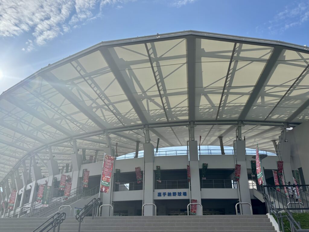 初日の練習は午前10時から、気温22度と南国らしい暖かさ以上の暑さの中で開始した。今年5月に開場したばかりの嘉手納球場は、中堅122m、両翼100mで、全面人工芝に照明完備。大会を主催する全日本女子野球連盟の山田博子会長は「普段とは異なる環境の中で新しい自分を発見して、沖縄の空気、文化を感じながら楽しんでください。エンジョイベースボール!」と挨拶。そして選手たちはビアンカコーチの先導によるウォーミングアップで体を温めた後、キャッチボール、ノックで汗を流した。