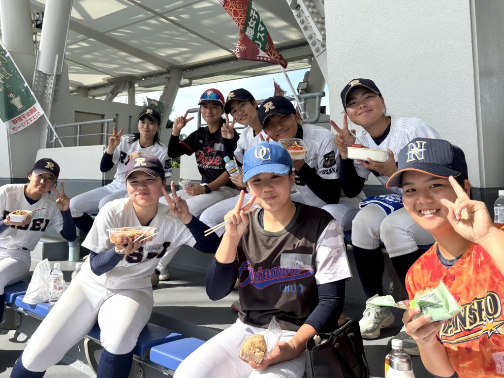 そしてチーム全員で参加している履正社高校は、自主性を促す意味もあってホテル宿泊も”3食自炊”をしながらの参加。この日の昼食も各々がお弁当を作り、「大変です。この後も明日のご飯の買い物をしないといけない」とのことだが、表情は楽しげ。「暑いぐらいですけど、すごいいい環境です。みんなで仲良くなって、みんなで野球を楽しみたい」(宮脇彩果)と明日以降へも意欲満々だった。