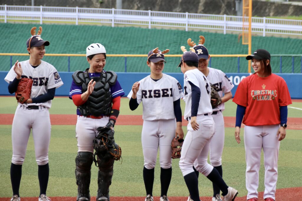 お互いがクリスマスグッズを身に付けての和やかな選手紹介から一転、チームD打線が序盤から爆発する。1回表、4番・釣舩葵、5番・別府日向乃のバットでチャンスを作り、7番コン・イン・サムのタイムリーなどで一挙4点を先制する。