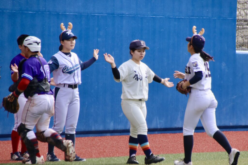 すると4回表、2番ウィン・ヒンの2塁打の後に2四球で走者をためて、5番・別府日向乃のこの日3本目となるヒットがタイムリーとなって2点を追加。さらに7回表には上原柚亜、釣舩葵、ルイ・チー・アー、齋藤羽奈と4本のタイムリーを重ねて計5得点。最終的に計13安打で大量17得点を奪った。