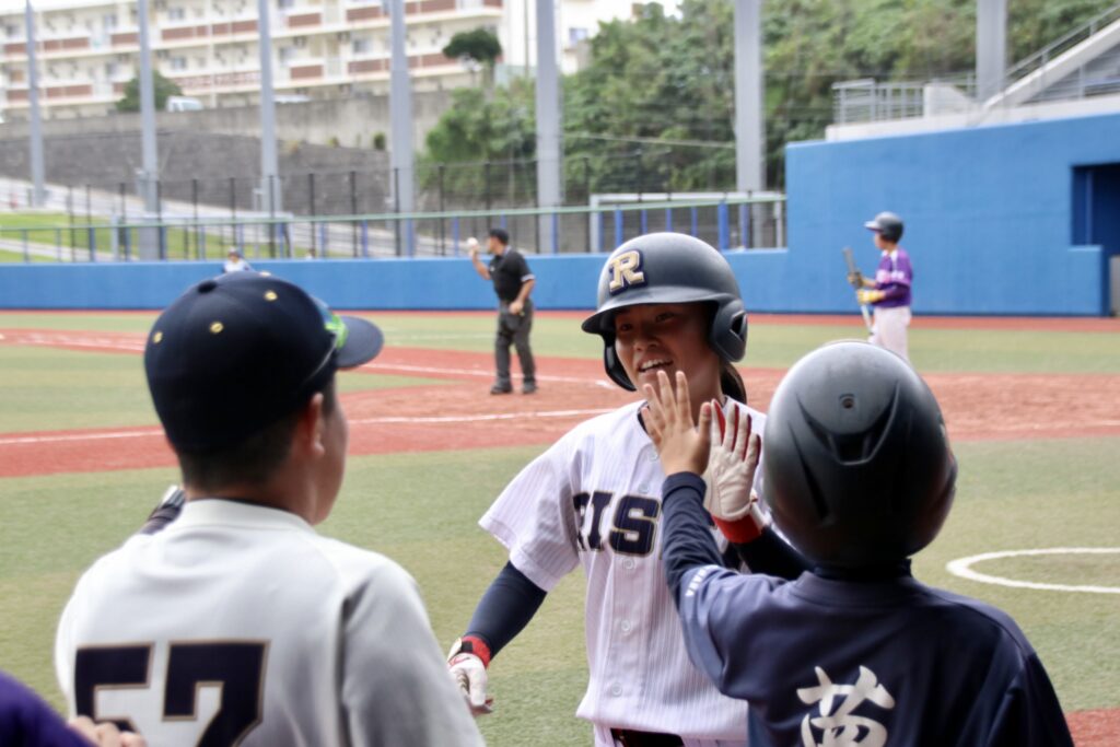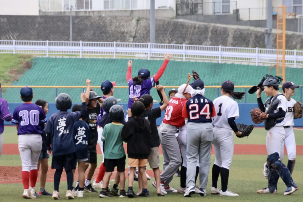 6回表に立ち直った西森絢音は、最終回に山本涼香にヒットを許したが、伝令の励ましもあった中で落ち着いてピッチングで、最終打者をファーストライナーに打ち取ってゲームセット。最後は履正社高校による沖縄での野球教室に参加した子どもたちの応援も加わり、チームEが嬉しい今大会初勝利を挙げた。