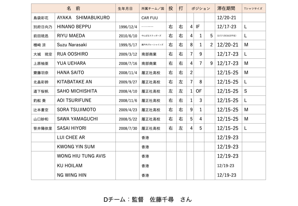 各チーム分け発表!